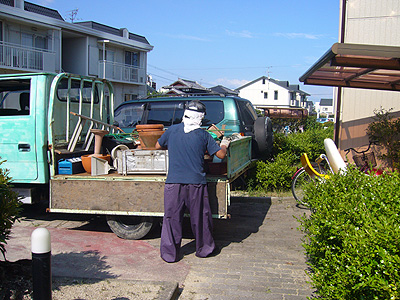照りつける日差しが強い中、7/16に庭先周りの廃品回収作業をしました。