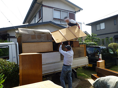 二階の階段を通っての作業で、一部分解解体しての積込でした。