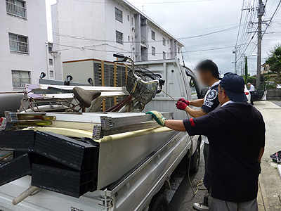 事務所の閉鎖で不用廃品の回収に行き、積み込みを終えました。