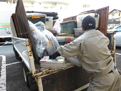 家庭から出た不用廃品の積込みです。