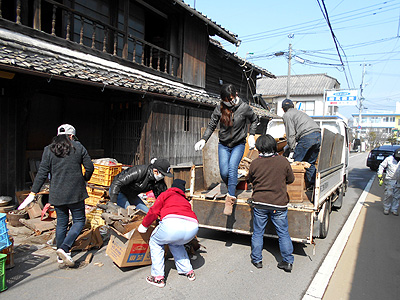 人手を増やし11人で作業し、トラックも4台使用して