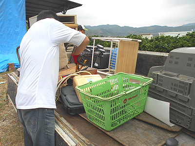 三日月町へ行き不用品の廃品回収で積込み作業を