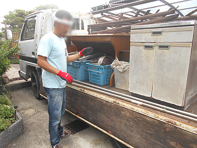 本庄町へ出かけ、不用品廃品回収の積込み作業中です。
