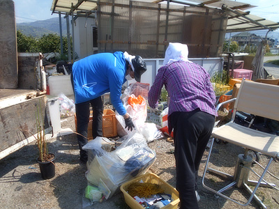 初夏の候と思わせる好天気のもと、廃品の区分け作業です。