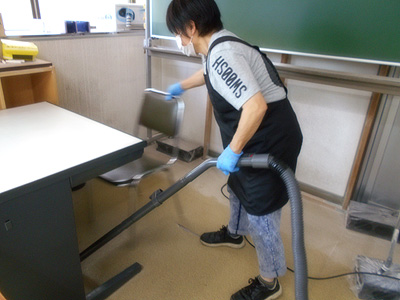 アルコールでの机や椅子の消毒は勿論、フロアも
