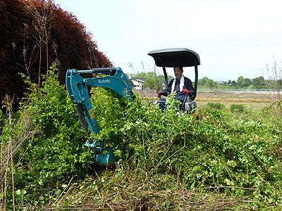 雑草が生茂り、荒地で草刈機では効率も悪いので