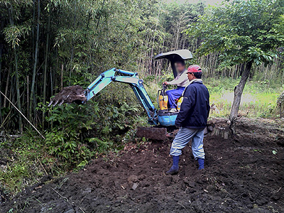 小型のパワーショベルで作業しました。
