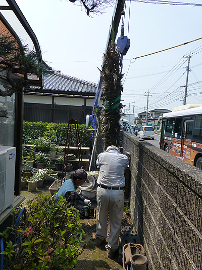高く伸びたしゅろの樹の伐採作業です。