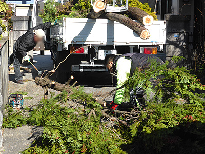 若楠二丁目まで庭木の伐採作業に出かけました。