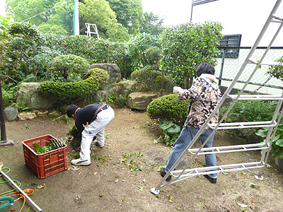 庭木の枝打、剪定作業のあと、庭周りの掃除をしたところです。