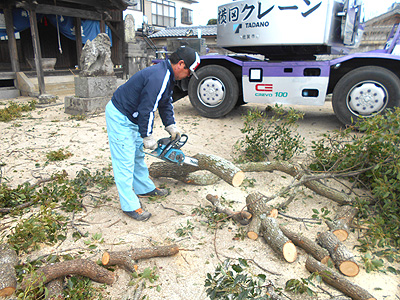 昨日に続き、枝木を細かく切るチェーンソー作業です。