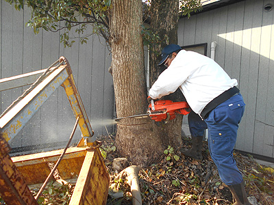 作業の際に邪魔になる楠の大木の切り込み作業中です。