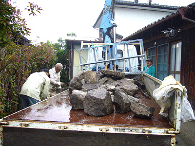 午後からも降り続けた小雨のなか、庭石の除去作業に行ってきました。