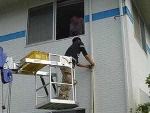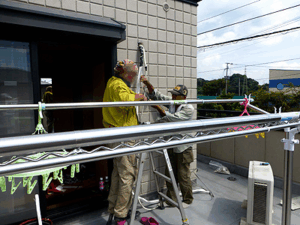 H27年3月27日(金) エアコンの取り外しです。二階建屋で二連梯子も使用できず、トラッククレーンで作業しました。 周りには電線が張られ、作業に手間取りましたが無事に終えたところです。 エアコンの取外し、移設、困った事な […]