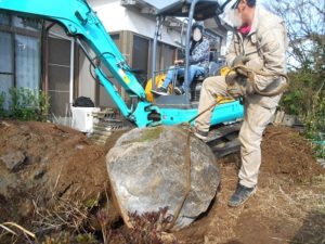 令和6年2月26日(月) 今日は庭石の除去作業です。 重量約3トン級の庭石が8~10体ほど…。10tダンプ2台で数回に分けて積み込みました。 この日は緊張と、あとの進行が気になり昼食をとれないほどでした。 ------- […]