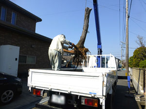 4/8(火) 庭の切株伐採で、クレーンを使い吊り上げた所です。比較的小さかったので短時間で終わりました。 後は椿の移植作業や庭木周りの腐葉土と庭土を混ぜて養土づくりまで作業しました。 庭木の伐採、切り株除去、困った事があ […]