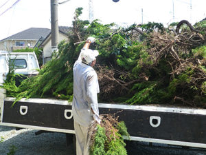 7/21(日) 庭木の貝塚を伐採し、トラックで2台分相当量の積込みをしており、チェーンソーで切り倒しました。 後の運搬処理の方が手間がかかりそうです。 庭木の剪定・枝打ち・消毒、除草に草刈、庭のお手入れならなんでん『佐賀 […]