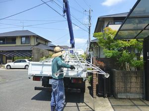 7/12(金) 庭木が生い茂り、そのうえ桂が縦横無尽に絡み足場が悪くクレーンでの伐採作業です。 気温35度の炎天下猛暑日、休憩時は汗で服もぐっしょりでした。 剪定・枝打ち・消毒、除草に草刈、庭のお手入れならなんでん『佐賀 […]