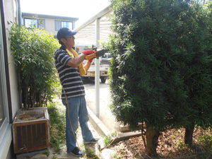 H30年9月18日(火) 垣根の庭木の剪定で、外側に落ちた道路沿いの粗材の回収です。 道路と家の境界の外に隣接している雑草も取込みました。 通常側溝の周りは放置されているのでこの機会に綺麗になりました。 庭木の剪定・枝打 […]